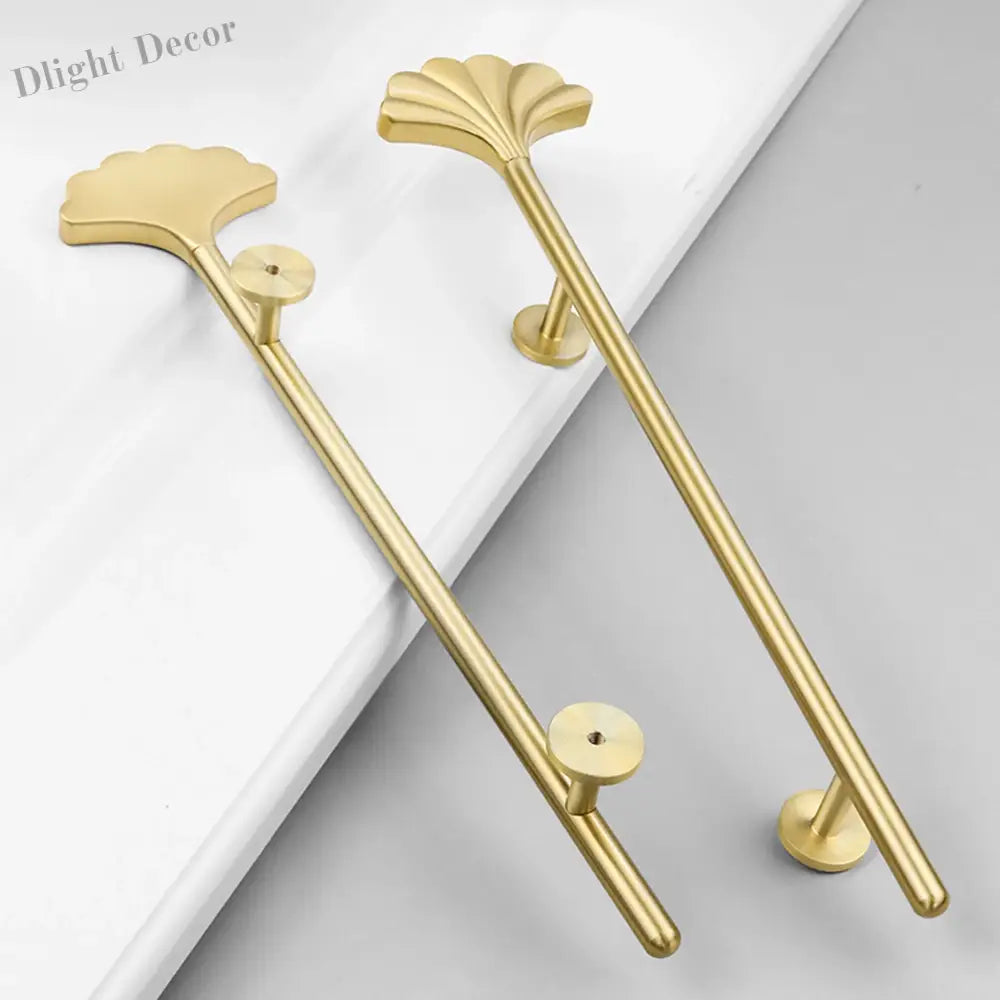 Enhance your home decor with this stunning Ginkgo Leaf-Shaped Furniture Handle, crafted from premium solid brass with a luxurious gold finish. Perfect for cabinets, wardrobes, cupboards, and drawers, this modern handle combines artistic design with durability. Featuring a pitch-row specification of 156mm, it offers easy installation and a stylish upgrade to any furniture piece.