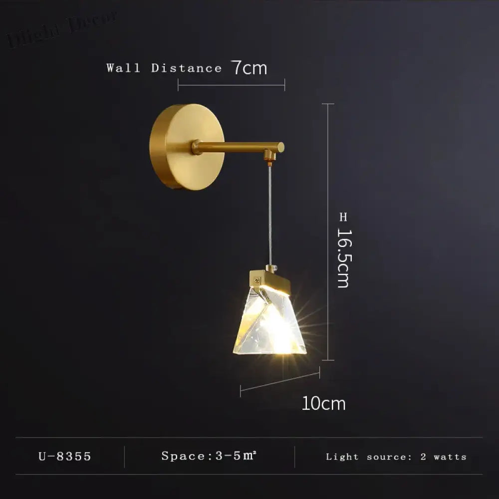 Amelia - Lampe murale de chevet post-moderne en laiton et cristal, lampe murale de luxe créative à LED pour salon et chambre à coucher