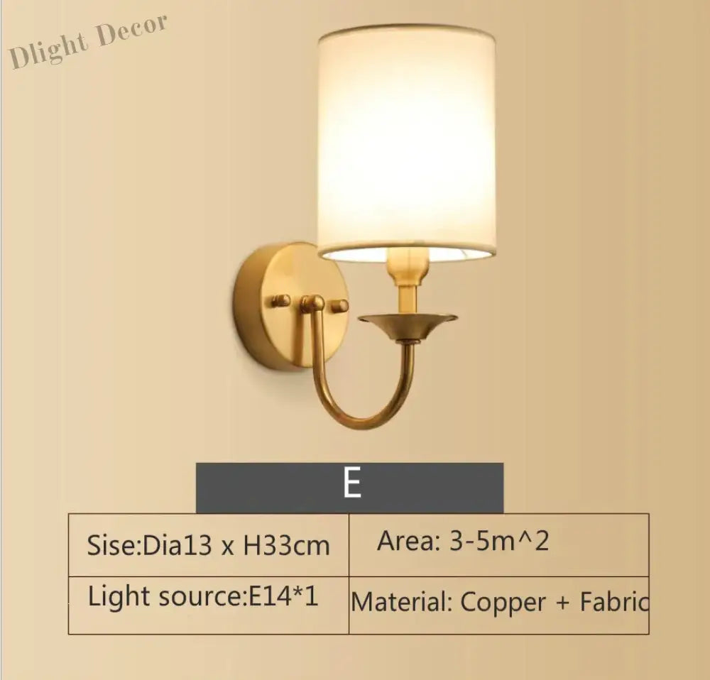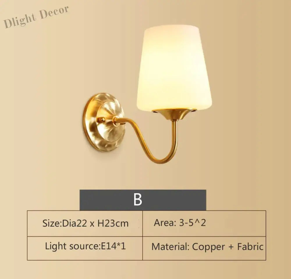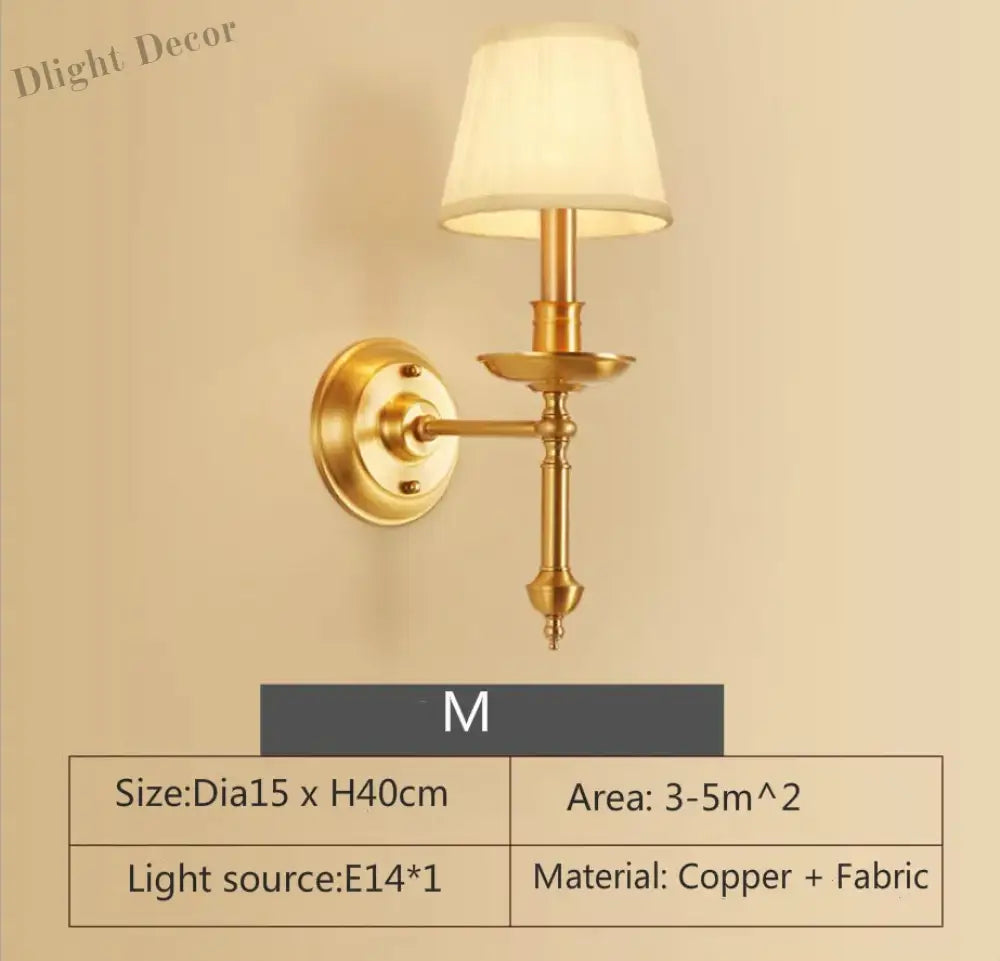 Eleanor - Lampe murale américaine entièrement en cuivre Lampe de chevet pour chambre à coucher Éclairage européen Moderne Simple Salon Couloir créatif