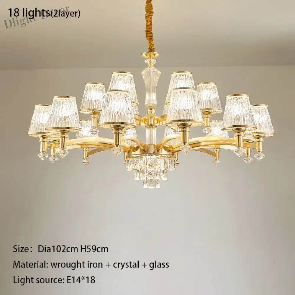 Rehaussez l'ambiance de votre salon, de votre chambre ou de votre salle à manger avec notre superbe lustre en cristal de style européen. Ce lustre allie harmonieusement l'élégance européenne au luxe lumineux moderne, créant un luminaire captivant qui ajoute opulence et style à votre décoration intérieure.