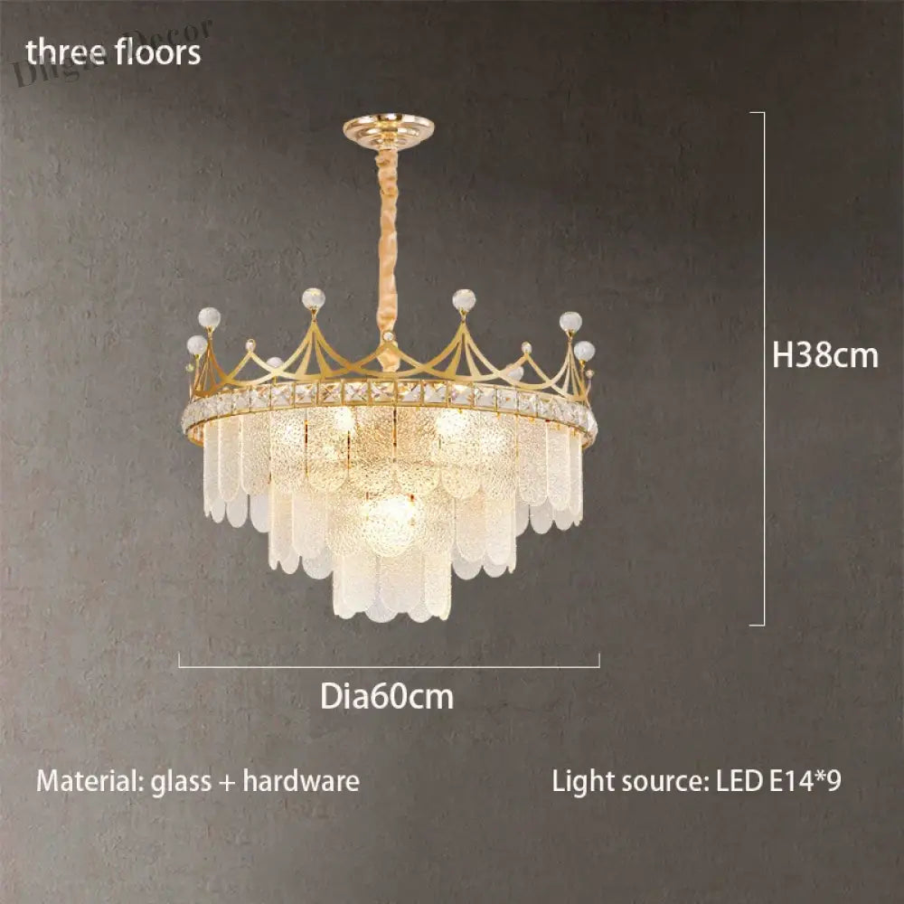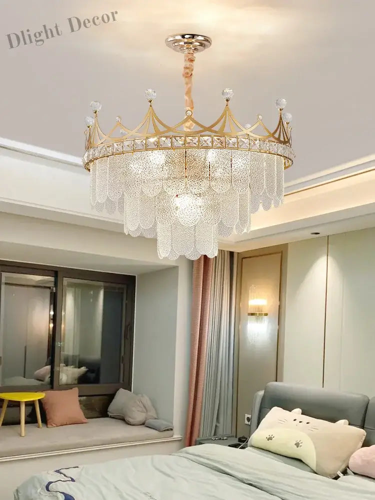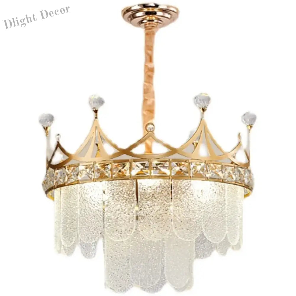 Couronne en cristal K9 : Orné d'éléments en cristal K9 dans un design en couronne, ce lustre respire l'opulence et la sophistication, ce qui en fait un point focal époustouflant dans n'importe quelle pièce.