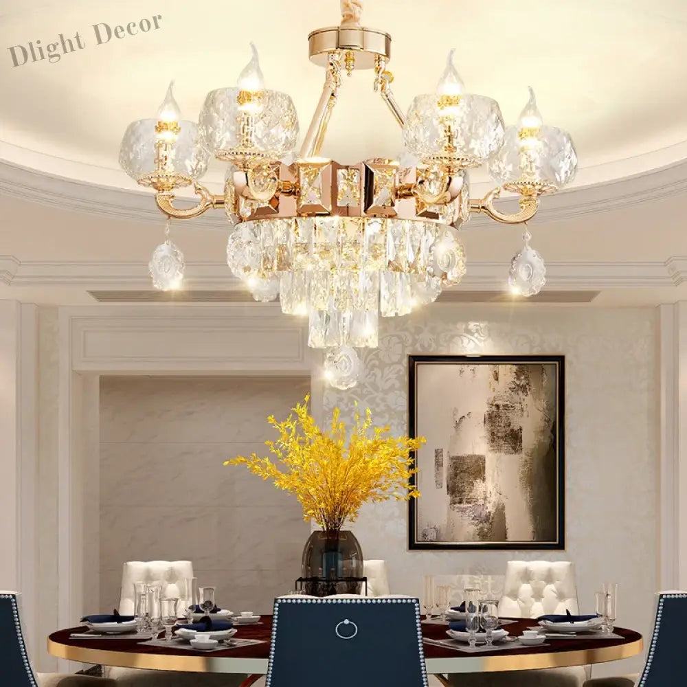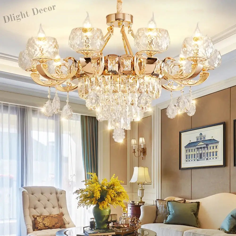 Grande lampe à suspension en cristal de style européen - Luxe haut de gamme pour les salons, les salles à manger et les chambres