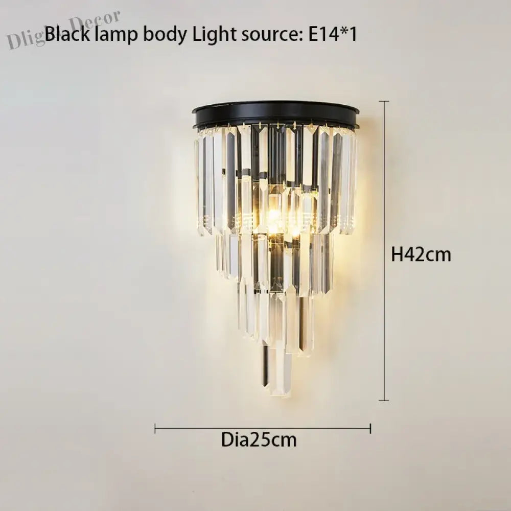 Voici l'applique murale de luxe Postmodern Light de Luca, un symbole d'élégance nordique et de design moderne qui rehausse l'ambiance de votre salon, chambre, table de chevet, mur d'arrière-plan de télévision, couloir ou tout autre espace où vous recherchez une touche de sophistication. Cette applique murale exquise présente un design élégant avec des matériaux en fer forgé et en cristal K9 de haute qualité. Elle offre des options d'éclairage polyvalentes avec une ampoule LED E14 et comprend l'ampoule pour votre confort.