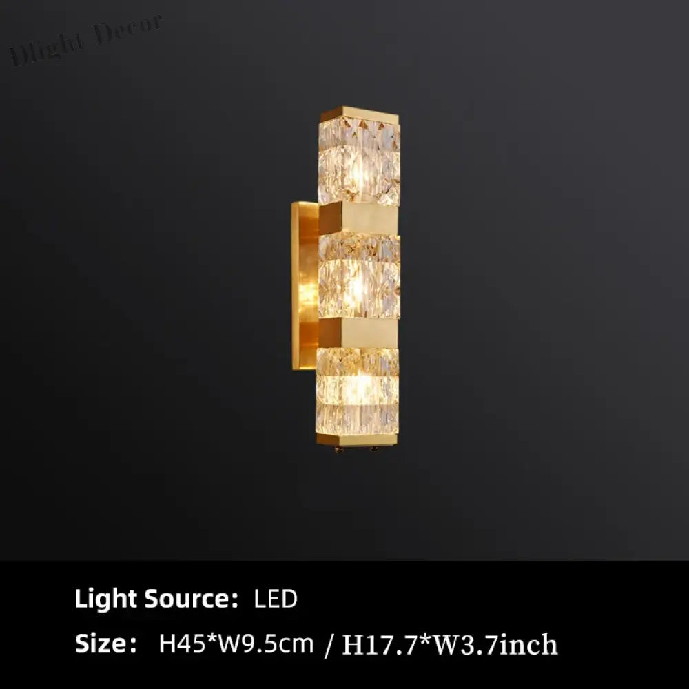 Rehaussez votre intérieur avec notre applique murale en cristal de luxe, un luminaire sophistiqué et opulent méticuleusement conçu pour enrichir votre salon et votre hall de villa intérieur. Cette applique murale est dotée d'embellissements en cristal exquis, de longues appliques en cuivre et d'un éclairage LED efficace, créant une atmosphère de luxe et de grandeur. Fabriquée avec précision et mettant en valeur l'élégance artistique, elle offre à la fois style et fonctionnalité, ce qui en fait un ajout idéal à votre décoration intérieure.