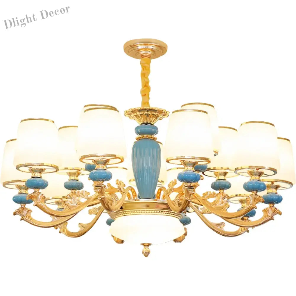 1. Élégance du cristal : Orné d'éléments en cristal, ce lustre respire l'opulence et la sophistication, ce qui en fait un ajout étonnant à n'importe quelle pièce.