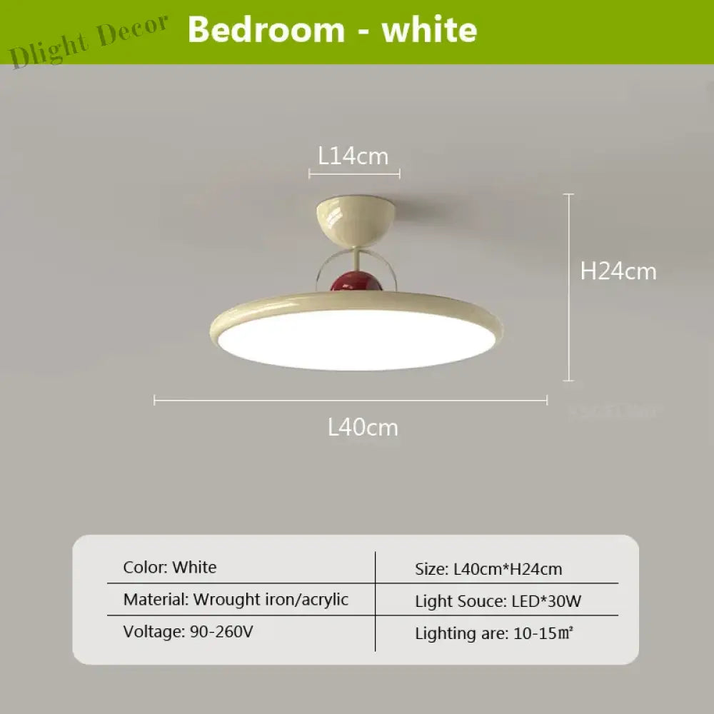Plafonnier LED nordique - Lampe soucoupe volante en fer crème pour salon, chambre, bureau et couloir