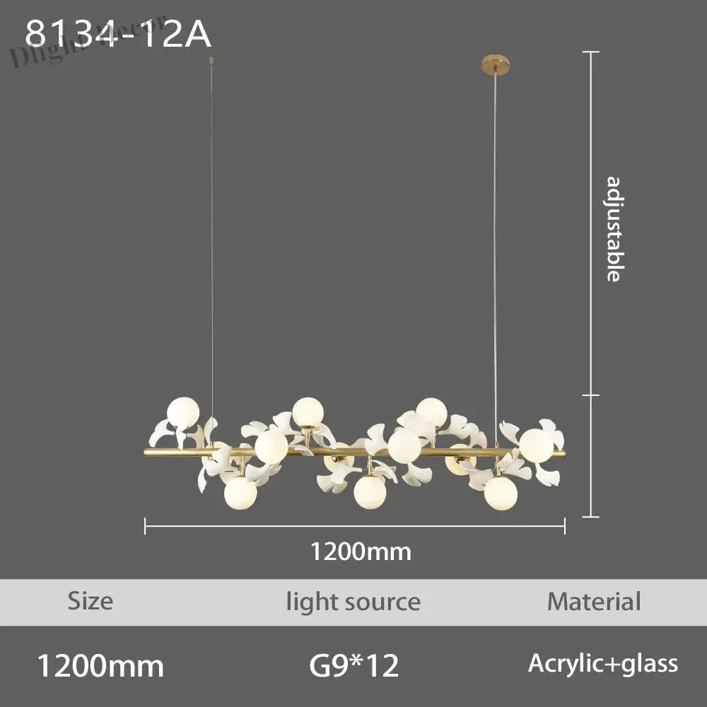Rehaussez la décoration de votre salon ou de votre chambre avec le lustre LED Nordic, un mélange saisissant de design moderne et d'inspiration naturelle. Ce lustre présente un design exquis de feuille de Ginkgo avec des feuilles blanches en acrylique, créant un point focal captivant. Le luminaire rond en forme de boule de verre ajoute un élément d'élégance contemporaine à votre espace. Fabriqué avec précision, il offre à la fois style et fonctionnalité, ce qui en fait un complément idéal à vos luminaires.