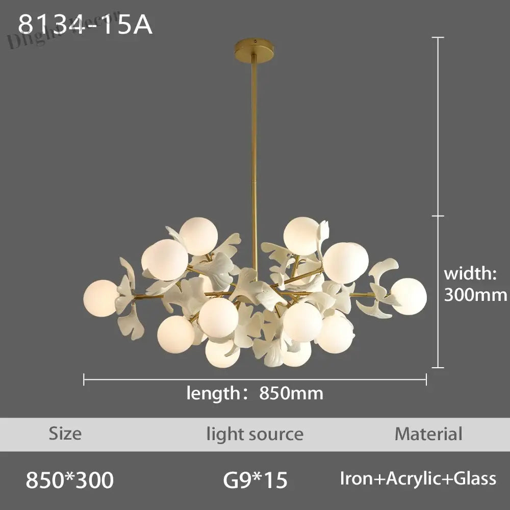 - Lustre moderne : Ce lustre présente un design moderne avec un motif de feuille de Ginkgo, adapté aussi bien aux salons qu'aux chambres.