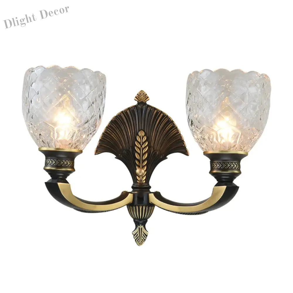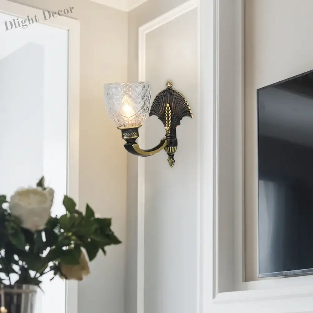 Oliver - Lampe murale américaine rétro classique entièrement en verre et cuivre, lampe murale de luxe créative pour bureau, chambre à coucher, salon