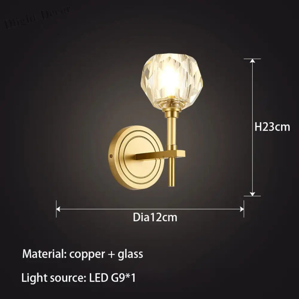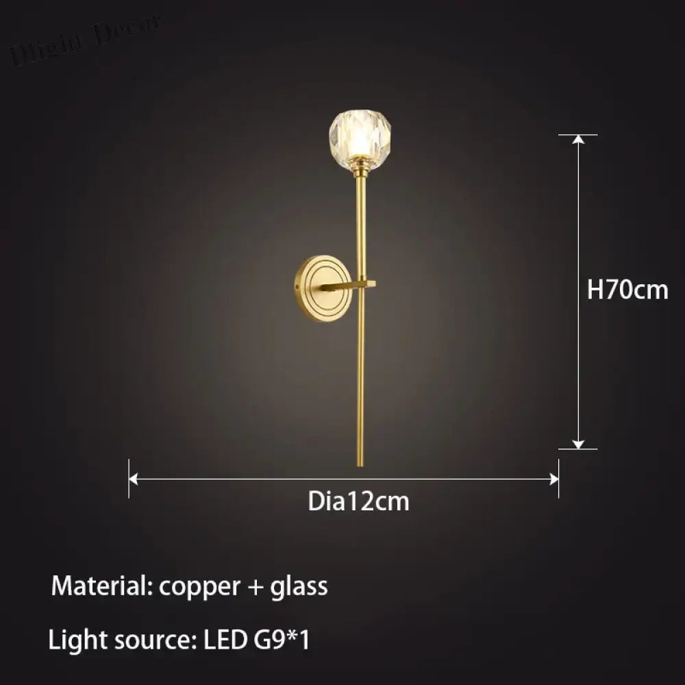 Olivia - Lampe murale tout en cuivre Lampe de chevet en cristal Salon Postmoderne Minimaliste Salle de bain Chambre Lampe Éclairage d'allée