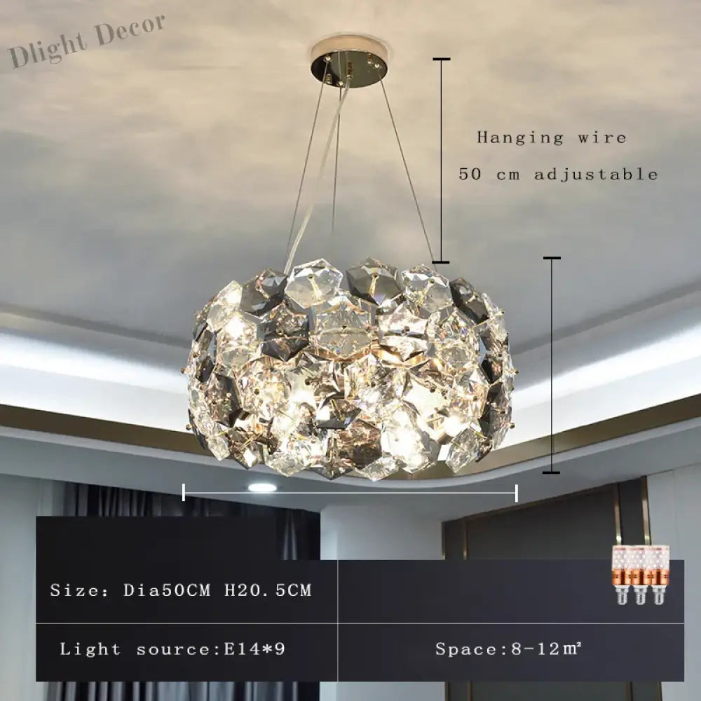 Rehaussez l'ambiance de vos espaces de vie avec notre lustre post-moderne en fer forgé et cristal. Ce luminaire exquis allie harmonieusement le design post-moderne à l'élégance classique, avec une construction captivante en cristal et en fer forgé. Idéal pour les salles à manger, les salons créatifs et les chambres nécessitant un éclairage suspendu brillant, il constitue une solution d'éclairage captivante et élégante qui met en valeur la beauté et la sophistication globales de votre décoration intérieure. Illuminez votre espace avec la lueur chaleureuse et accueillante de cet élégant lustre.