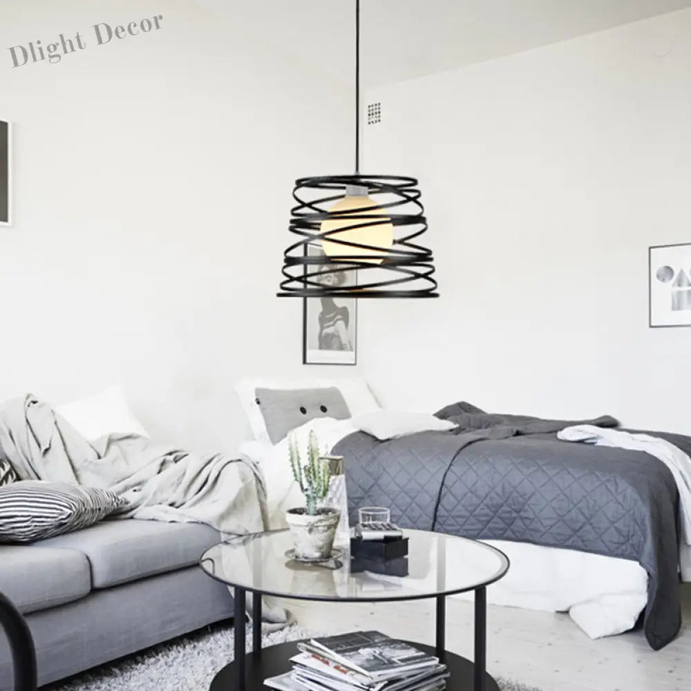 Cette magnifique suspension, parfaite pour les espaces modernes et industriels, est dotée d'un abat-jour en verre blanc suspendu à un élégant fil de fer noir.