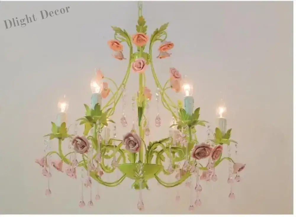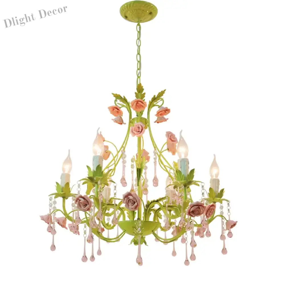 Rehaussez votre décoration intérieure avec ce lustre européen en forme de rose. Fabriqué avec une touche d'élégance européenne, ce lustre présente une lumière lustrée verte luxuriante et est disponible en trois tailles : 6 L, 8 L et 12 L. Les charmants accents de fleurs roses ajoutent une touche de romantisme et de style à votre décor.