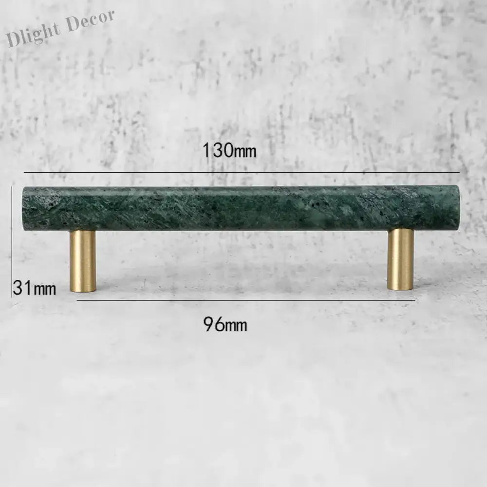 Poignée de meuble en marbre vert et blanc – Poignée de tiroir en pierre naturelle de luxe avec base en laiton (50 mm à 200 mm)