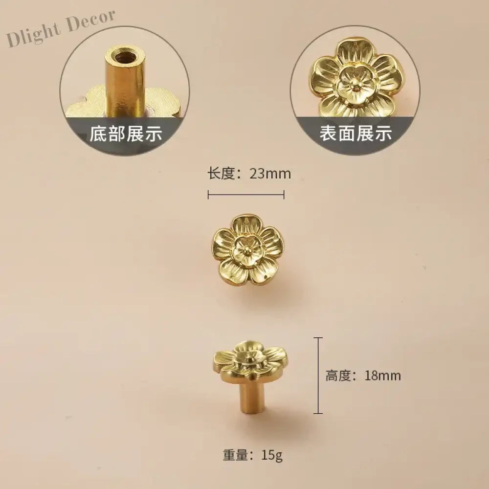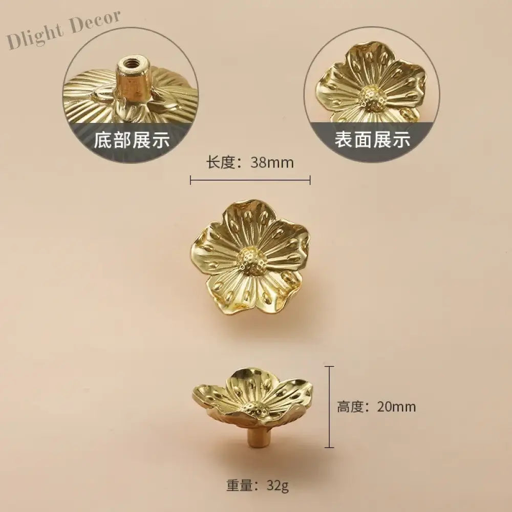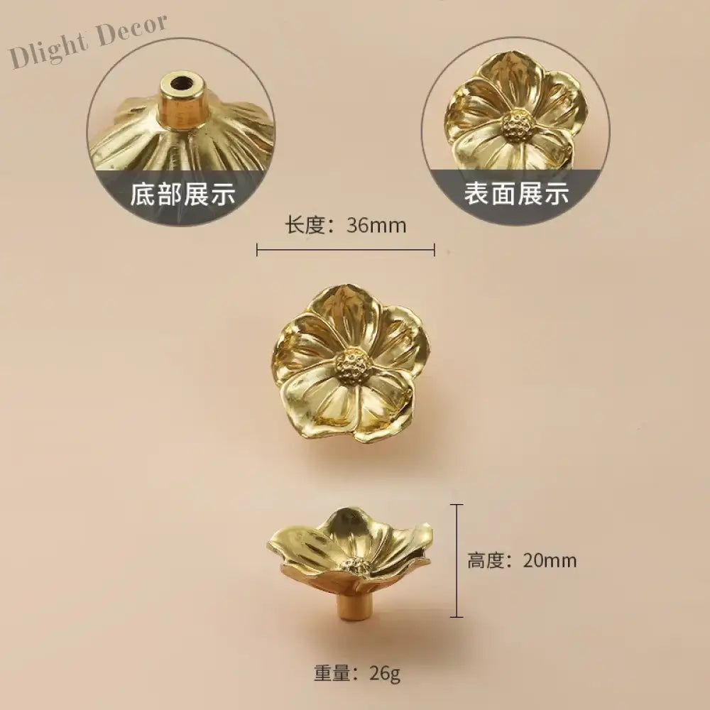 Poignées de placard de luxe en laiton à motif de fleurs et de feuilles – Poignées décoratives de style chinois pour armoires et tiroirs