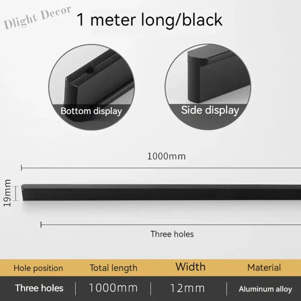 Sublimez vos meubles avec cette poignée de meuble ultra-longue et minimaliste en alliage d'aluminium, conçue pour un style élégant et moderne. Idéale pour les armoires, les placards, les tiroirs, les meubles à chaussures, les caves à vin et les meubles TV, cette poignée durable est disponible en élégantes finitions noir et or brossé. Son design minimaliste et sa longueur (800-1200 mm) la rendent idéale pour les intérieurs contemporains, alliant fonctionnalité et style.