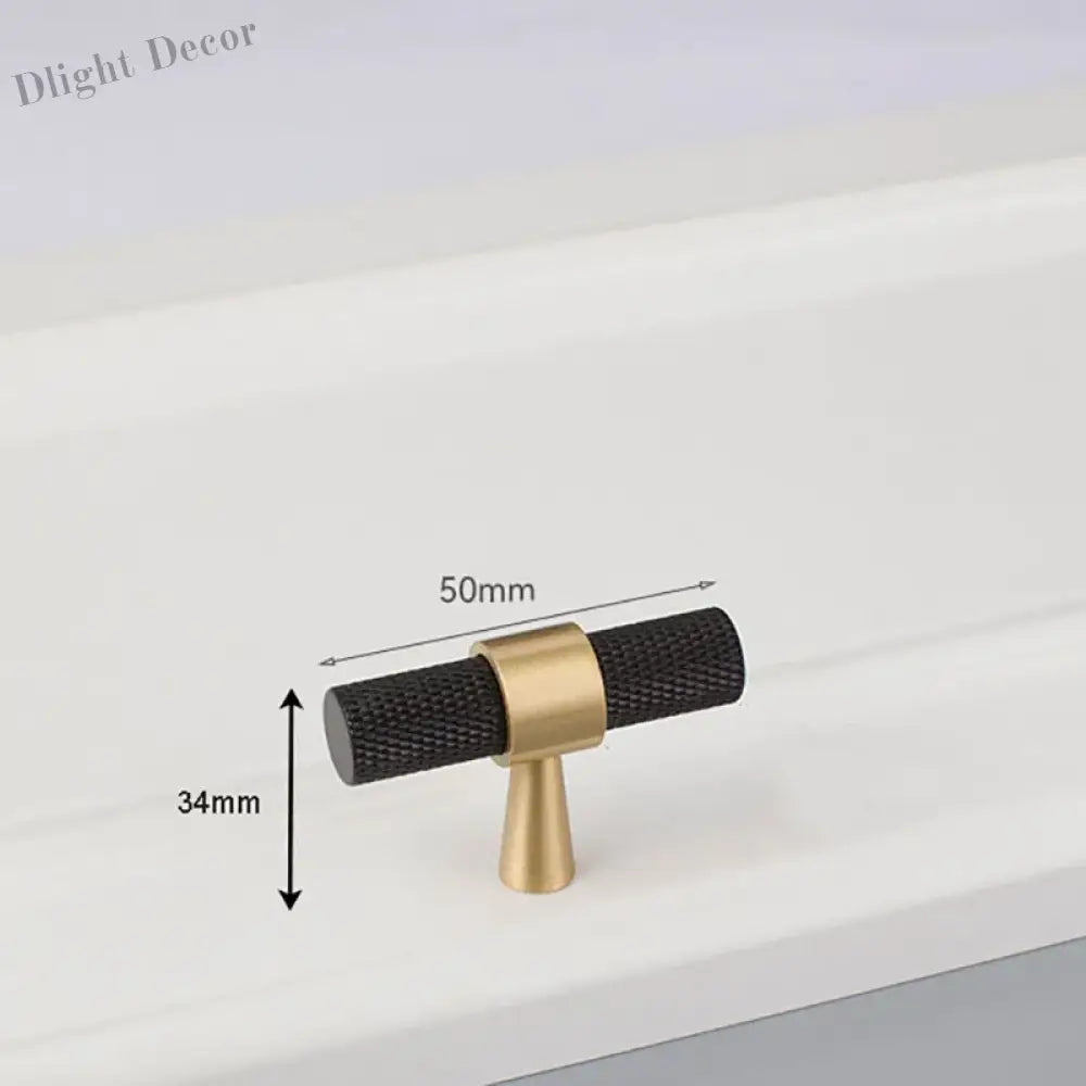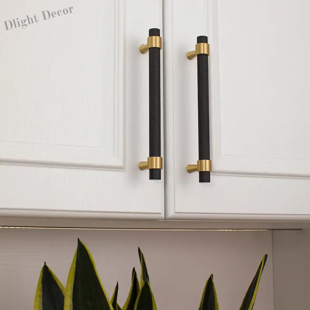 Poignées de placard moletées en laiton massif – Boutons de placard et poignées de tiroir dorés et noirs