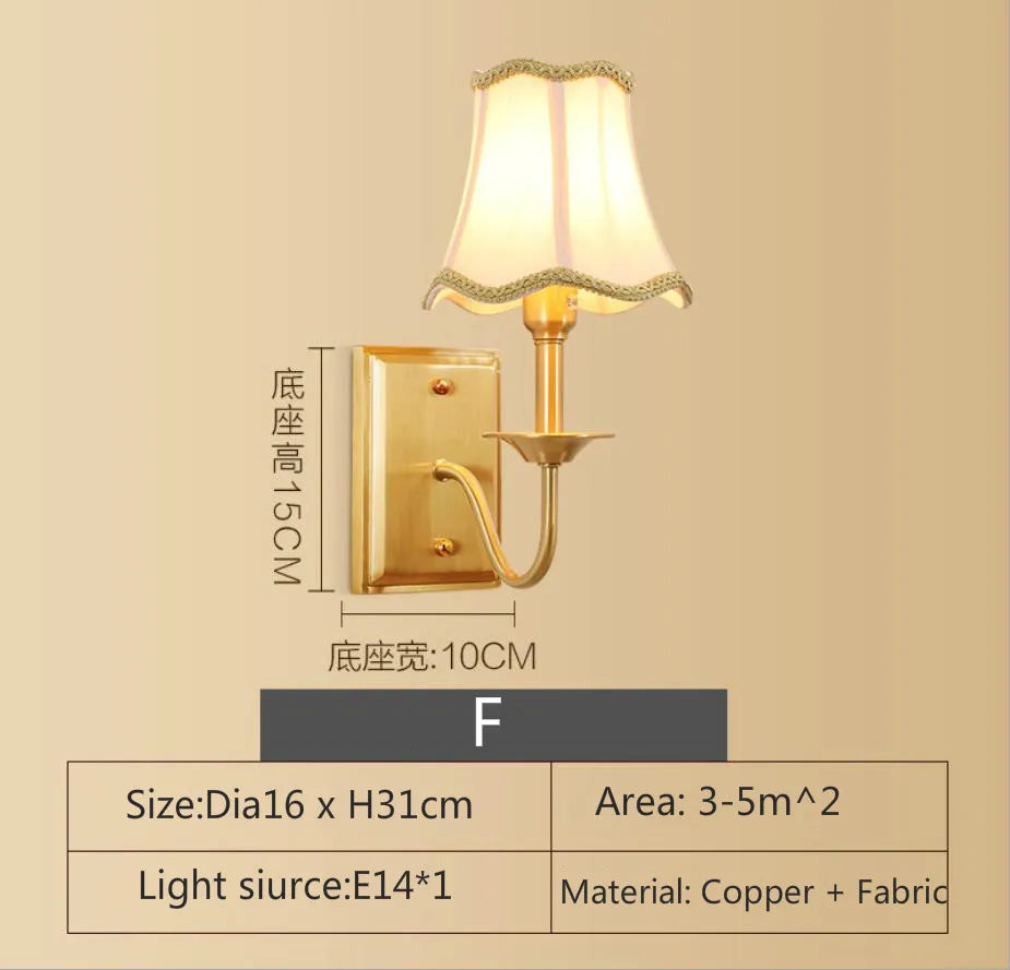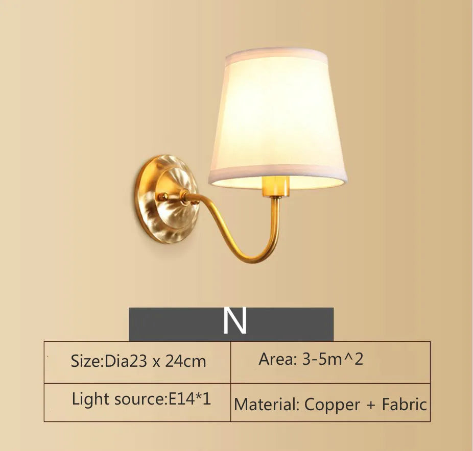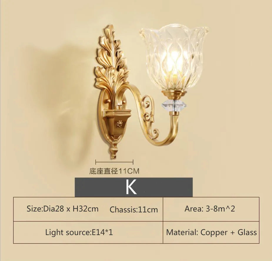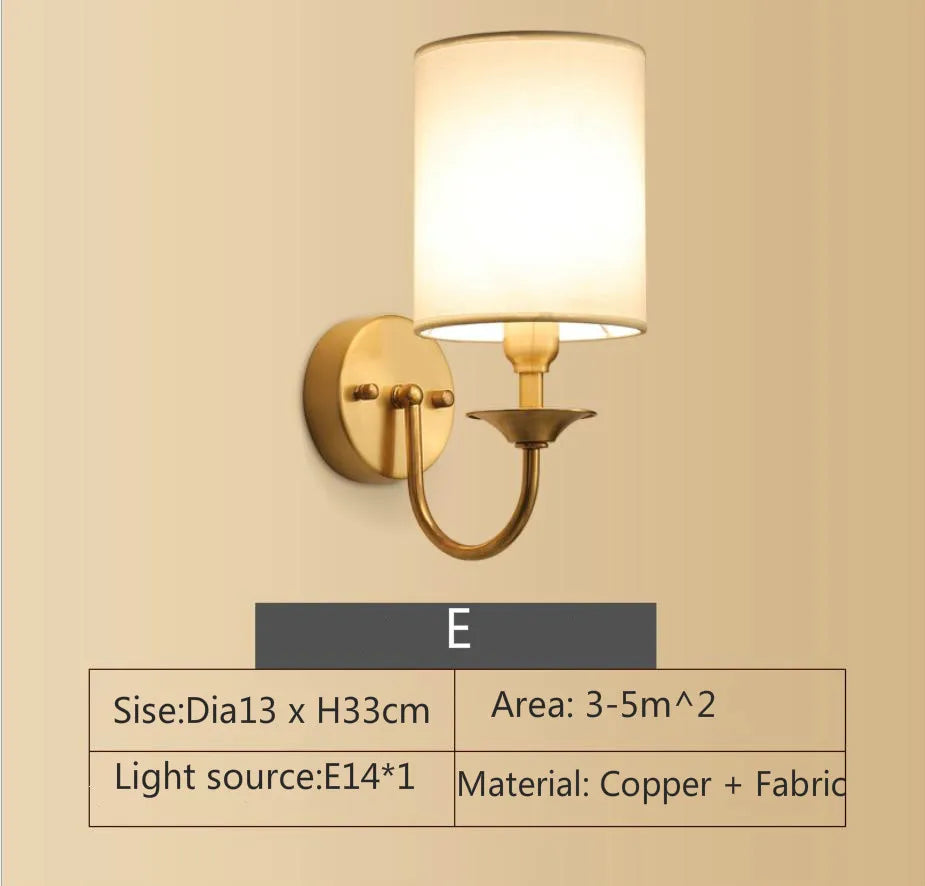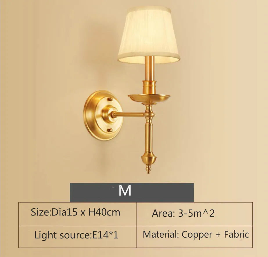 Eleanor - Full Copper American Wall Lamp Bedroom Bedside Lamp European Lighting Modern Simple Living Room Creative Corridor