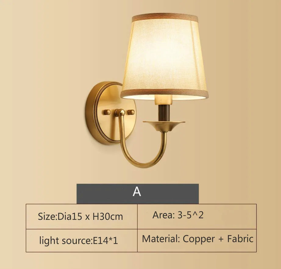 Introducing Eleanor Full Copper American Wall Lamp, a symbol of modern simplicity and European-inspired elegance that elevates the ambiance of your bedroom, living room, corridor, or any space in your home. This creative wall lamp combines full copper craftsmanship with glass and cloth accents, creating a striking piece of functional art.