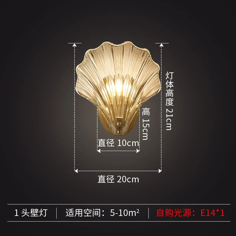 Madison - Fancy modern glass shell lampshade indoor bathroom waterproof next wall lamp led brass wall lamp