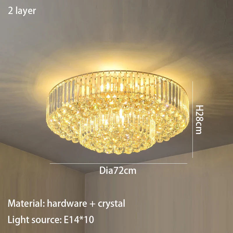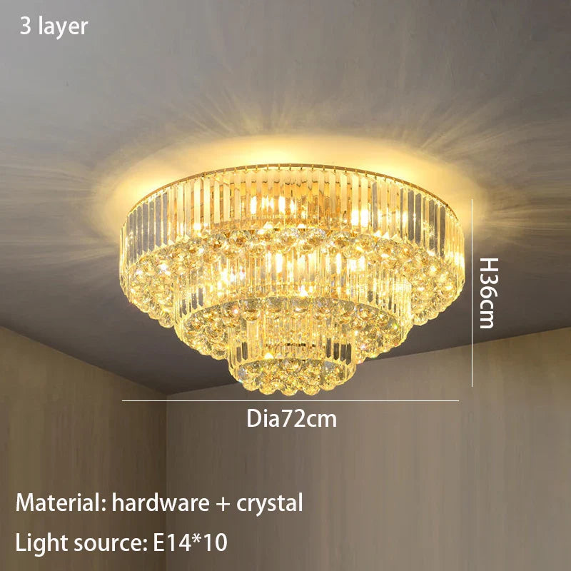 Enhance the ambiance of your home with our Modern Golden Rectangle Round Crystal Ceiling Light. This exquisite lighting fixture brings a touch of luxury and sophistication to any room, from living rooms and dining areas to bedrooms and villa halls. Crafted with precision, it seamlessly combines modern simplicity with the brilliance of crystal, creating a focal point that elevates your interior decor.