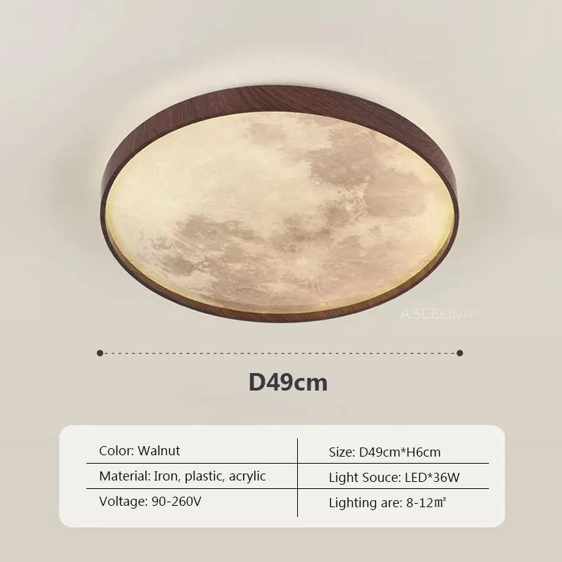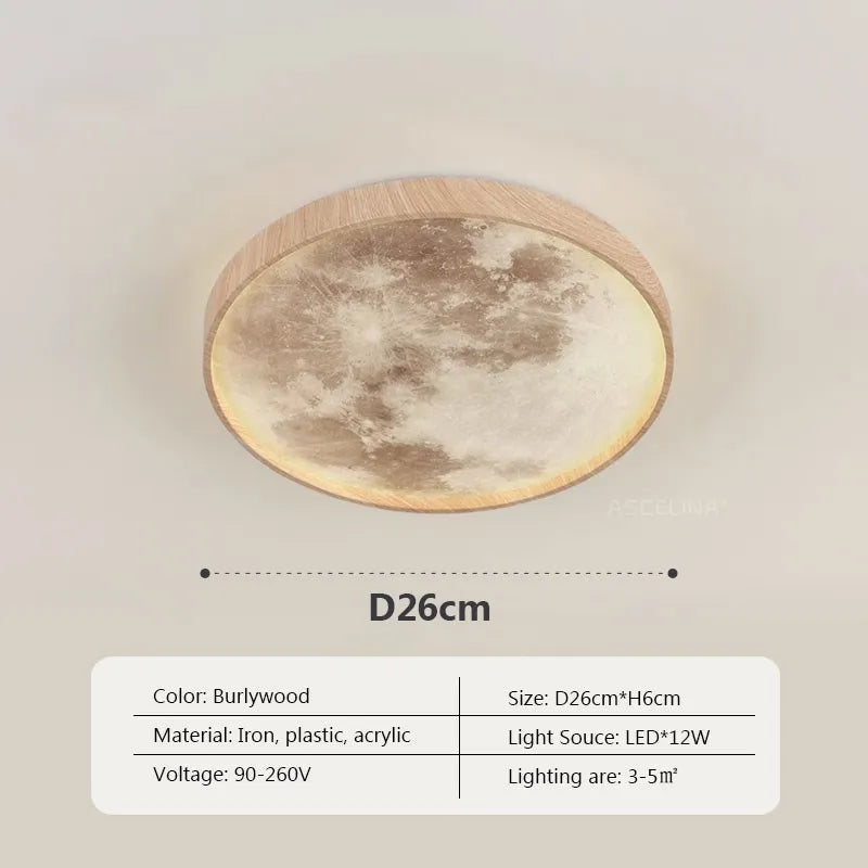 Nordic LED Ceiling Lamp - Wooden Moon Design - Ideal for Aisle, Balcony, Bedroom, Dining Room - Stylish Home Indoor Lighting Fixture