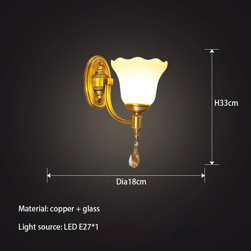 Sophia - European-style Glass Wall Lamp Warm Living Room TV Background Wall Bedroom Bedside Double Head All Copper Simple Wall Lamp