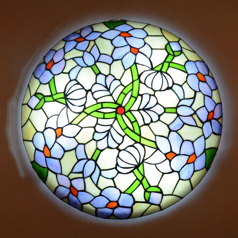 European-Style Tiffany Round Glass Ceiling Lights - Elegant Illumination for Restaurants, Corridors, Bedrooms, and More