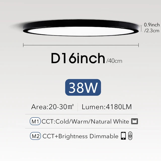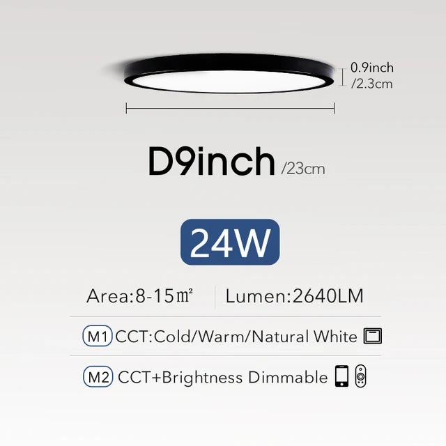 • Ultra-Thin Design: At only 2.4 cm in thickness, this LED ceiling lamp boasts an ultra-thin profile, adding a touch of contemporary elegance to your living space.