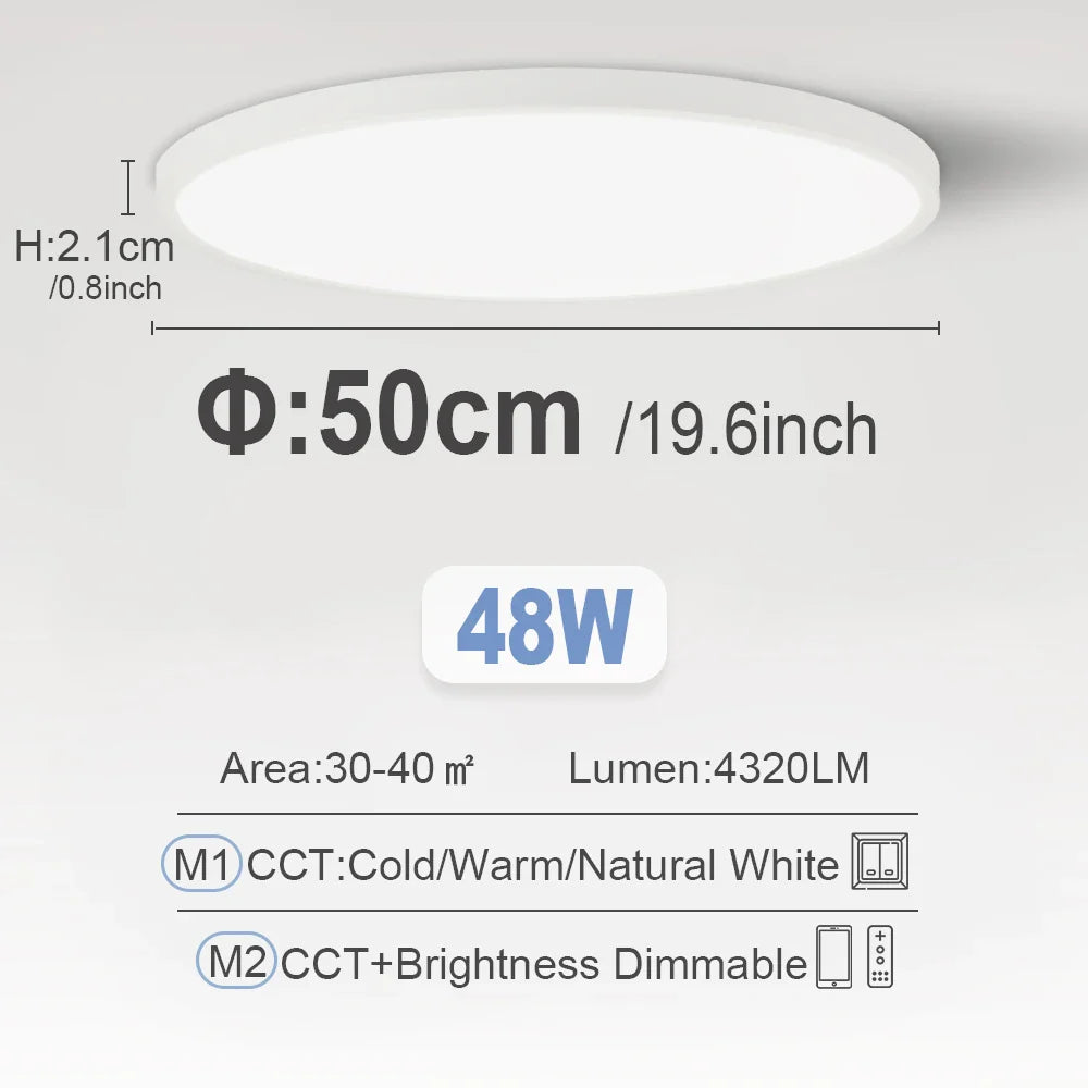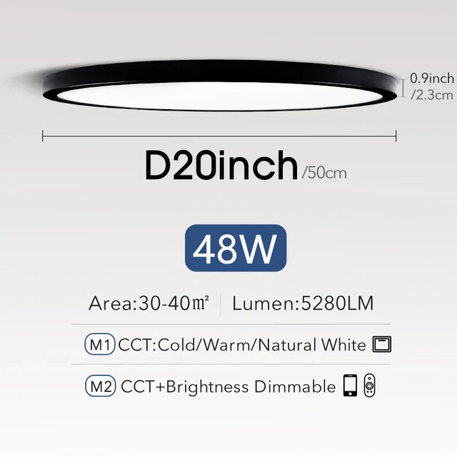 Smart LED Ceiling Lamp - 20-inch Ultra-Thin Lighting Fixture for Living Room, Bedroom, and Balcony