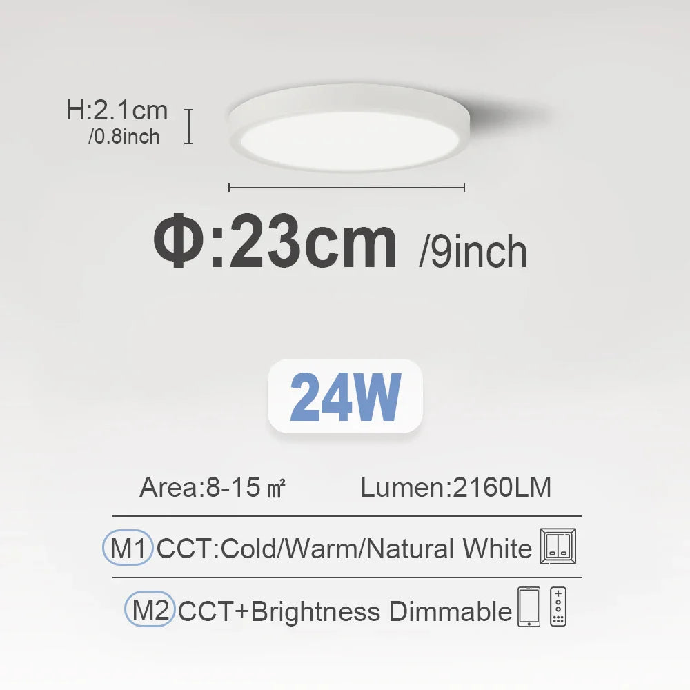 Elevate your home's lighting with our Smart LED Ceiling Lamp, a sleek and modern lighting fixture designed for living rooms, bedrooms, and balconies. With its ultra-thin profile at just 2.4 cm, this ceiling light seamlessly blends into any interior while delivering efficient and smart illumination.