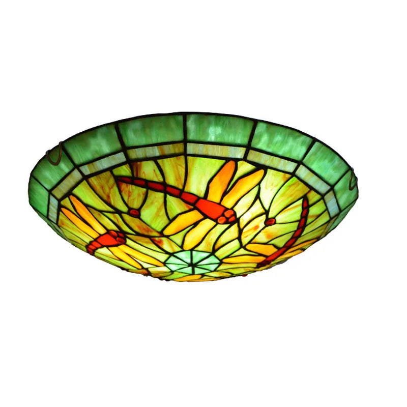 Tiffany Stained Glass Round Ultra-Thin Ceiling Lamp - Elegance for Balconies, Corridors, Bedrooms, and Children's Rooms