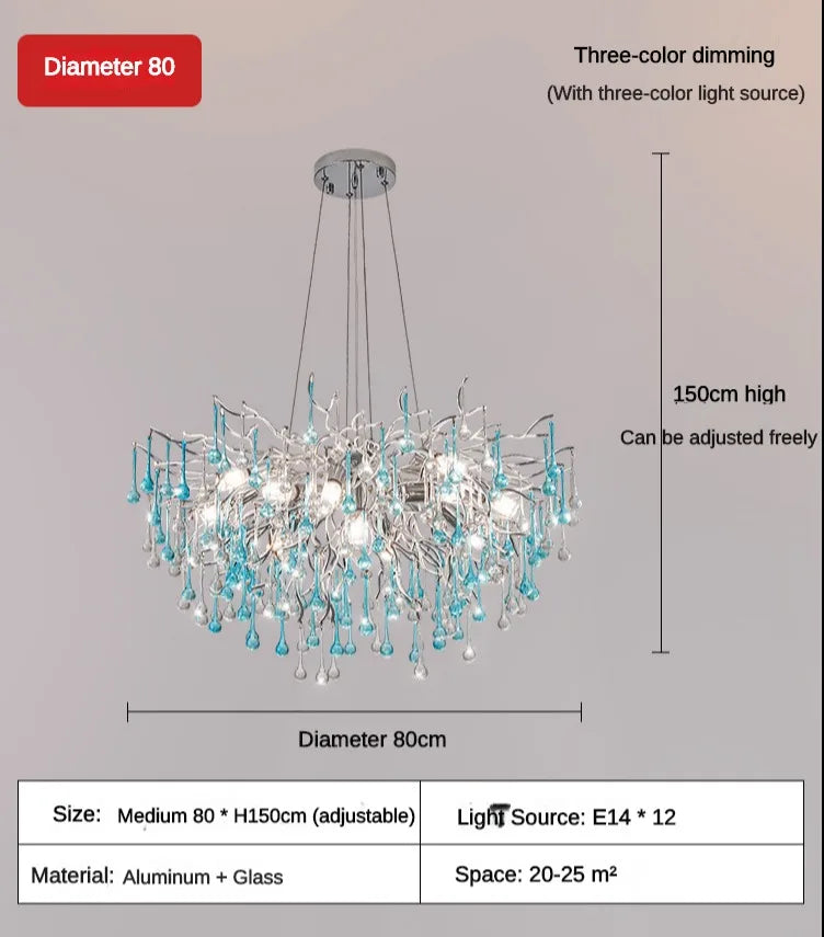 - Luxurious Blue Water Droplets: This chandelier features enchanting blue water droplets, creating a captivating and visually striking centerpiece in any space.
