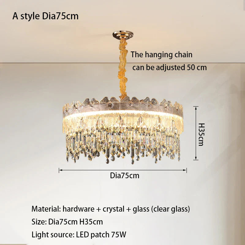 2. Gold and Crystal Elegance: Adorned with gold and crystal elements, this fixture creates a dazzling play of light, adding a touch of luxury and enhancing the overall ambiance of the room.