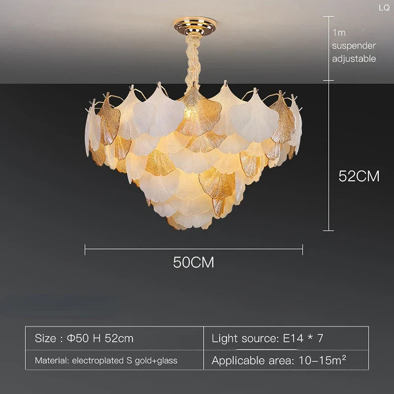 Modern LED Ginkgo Leaves Ceiling Chandelier - Elegant French Glass Lustre Decor Light