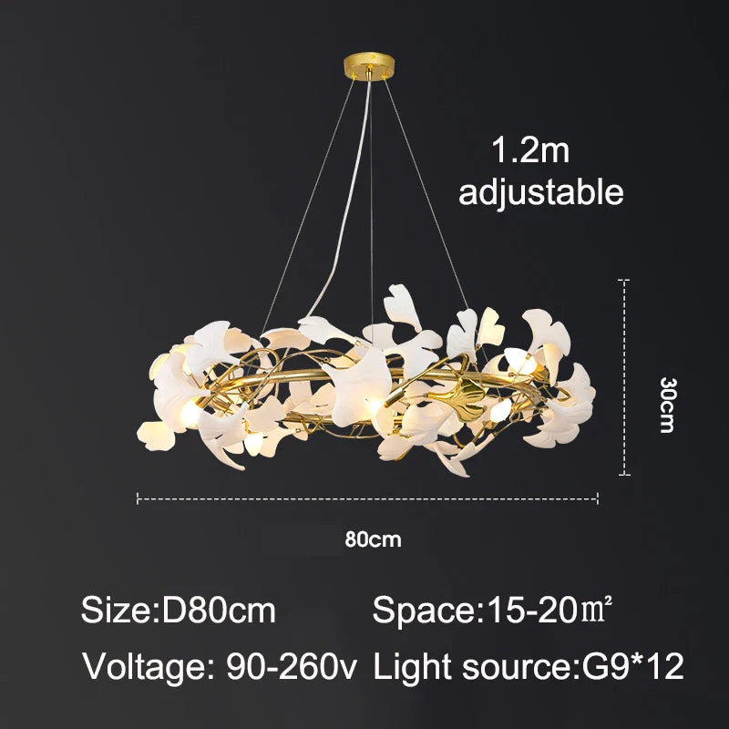 Enhance the ambiance of your living room, dining room, and bedroom with the Elegant Nordic Apricot Leaf Chandelier, harmoniously blending natural elegance, energy-efficient technology, and graceful design for a captivating and inviting atmosphere.