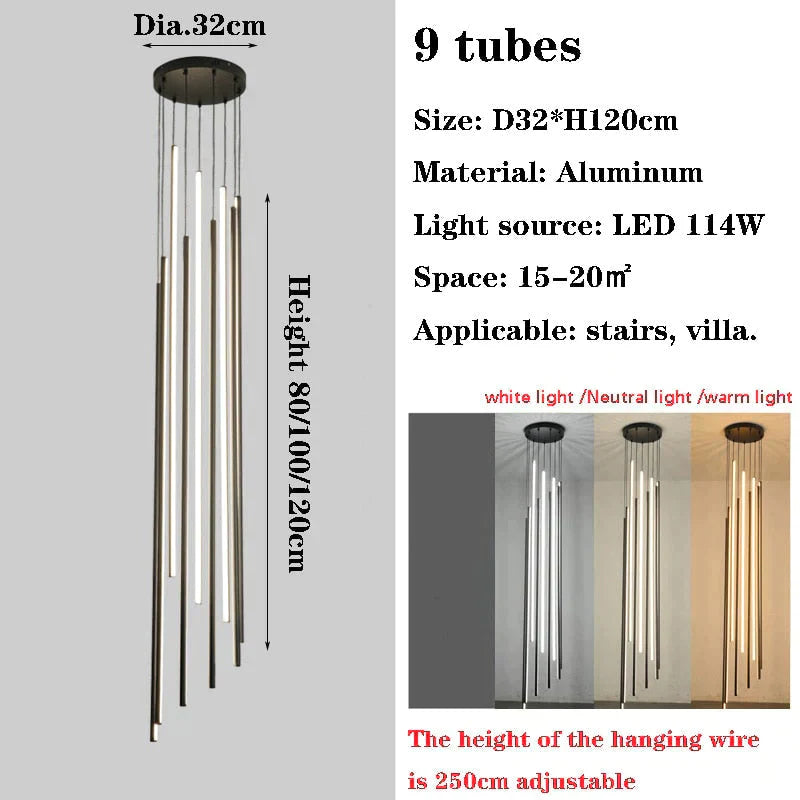 Introducing the Harper Black Stair Long LED pendant light , a stunning work of art designed to transform your home into a haven of elegance and sophistication. This captivating chandelier is more than just a lighting fixture; it's a focal point that enhances the architecture and ambiance of your space.