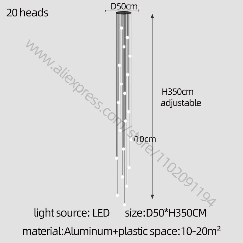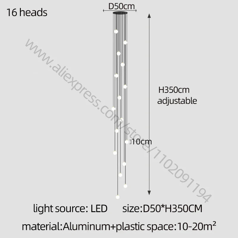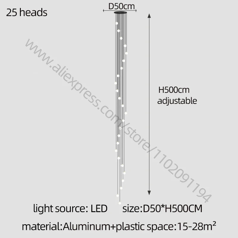 Enhance your living environment with this elegant LED Staircase Chandelier. Elevate your decor with its sleek design and create a warm and inviting ambiance in your home or villa. Whether you're aiming for modern luxury or sophisticated elegance, this chandelier offers versatility and style for your lighting needs.