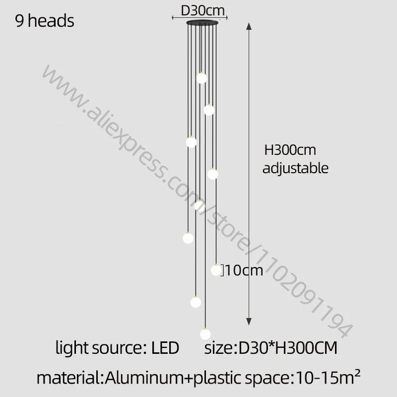 Elevate the ambiance of your duplex apartment, dining table, living room, or villa with our stunning LED Staircase Chandelier. This modern lighting fixture adds a touch of contemporary sophistication to your interior decor, making it a statement piece. Whether you're looking to create a welcoming atmosphere or enhance the lighting in your lobby, this spherical chandelier combines style and functionality seamlessly.
