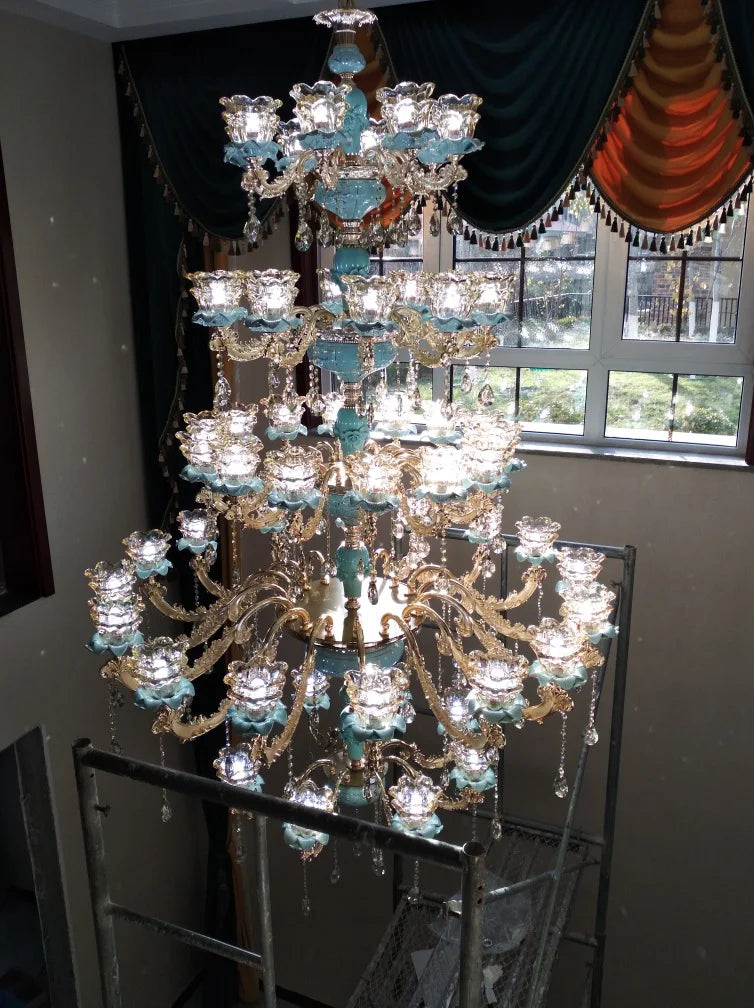 Enhance your interior decor, living rooms, hotels, and ceramic staircases with the European-Style Duplex Building Chandelier. It is an elegant statement piece that adds European opulence, ceramic accents, and a touch of timeless charm to your space. Illuminate your space with this stylish and functional chandelier, featuring exquisite details that enhance the overall aesthetics and create a sense of grandeur in your home or commercial setting.