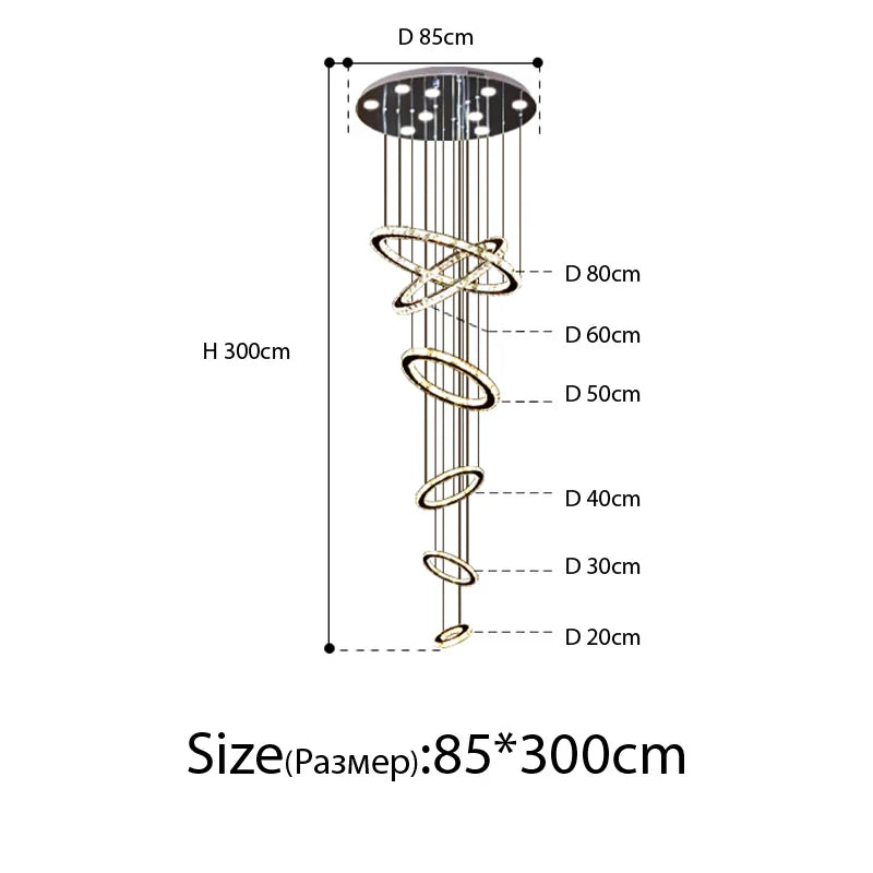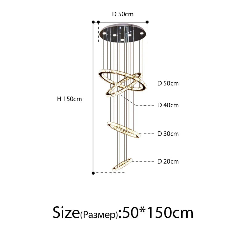 Elevate your interior with the Modern Luxury Crystal Staircase Chandelier, a symbol of opulence and contemporary design. This chandelier is meticulously crafted to enhance the ambiance of your loft, villa, and lobby. With its luxurious crystal detailing and unique rings motif, it not only provides brilliant illumination but also adds a touch of grandeur and sophistication to your home decor.