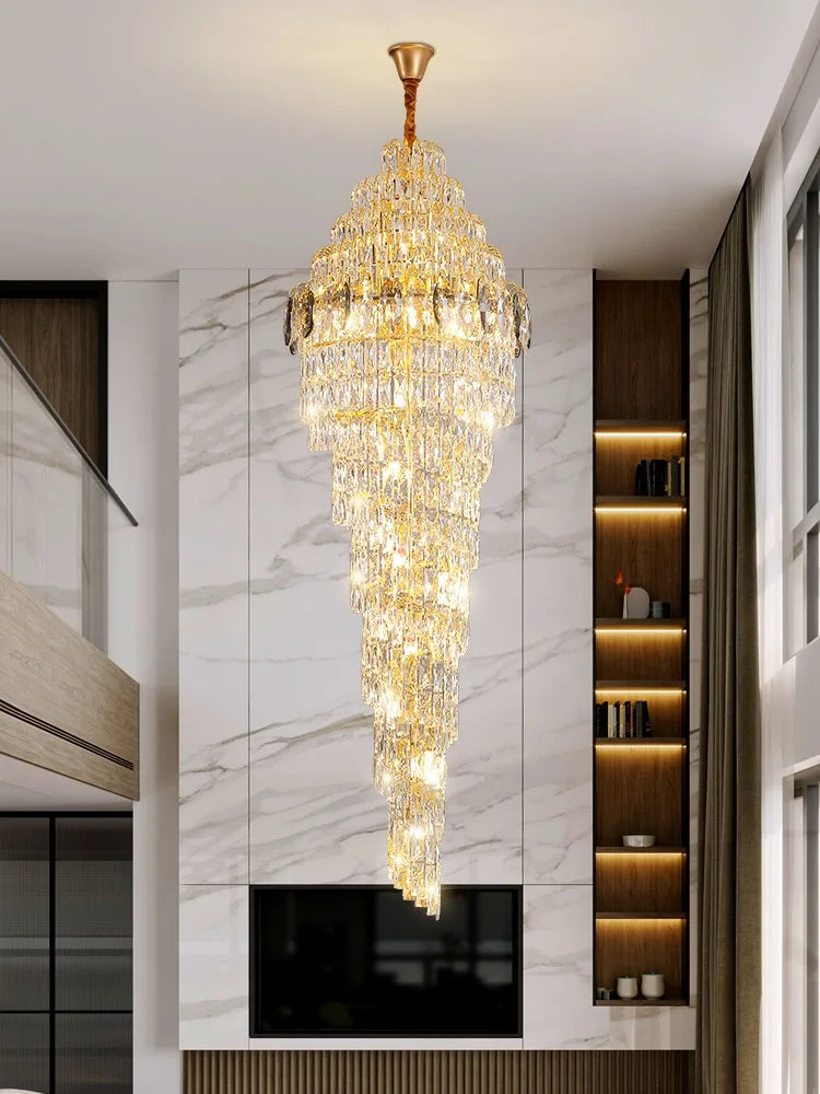 Elevate the ambiance of your living spaces with our Modern Luxury Staircase Chandelier. This exquisite lighting fixture seamlessly combines modern design with opulent details, featuring a golden body adorned with crystal accents. Ideal for duplex buildings, high ceilings, and decorative lighting, it stands as a captivating and stylish lighting solution that enhances the overall beauty and sophistication of your interior decor. Illuminate your space with the warm and inviting glow of this elegant long chandelier.