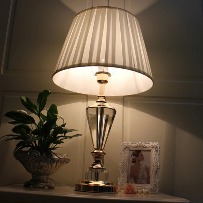 European Crystal Table Lamp with Classic Fabric Shade for Home Decor