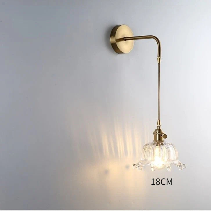 Modern Glass Wall Sconce Light Fixture - Elegant Bedroom, Restaurant, and Corridor Decor with Copper Flower Plug