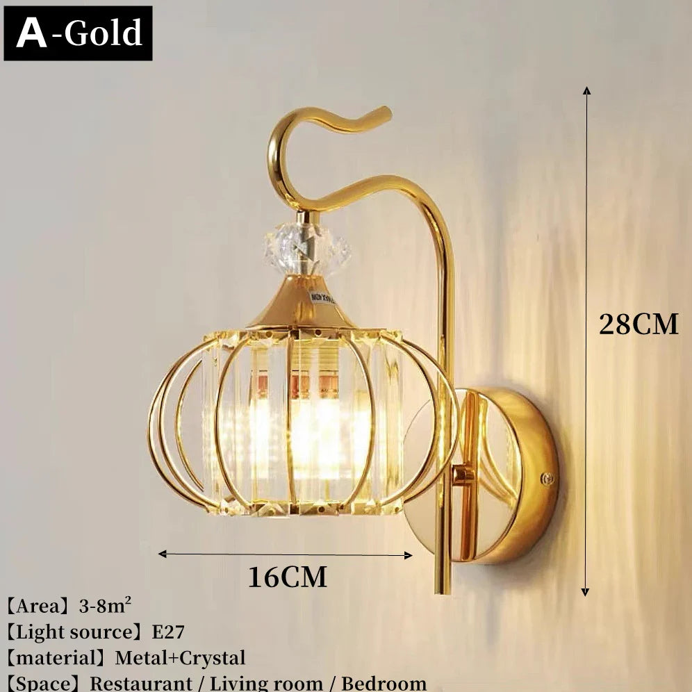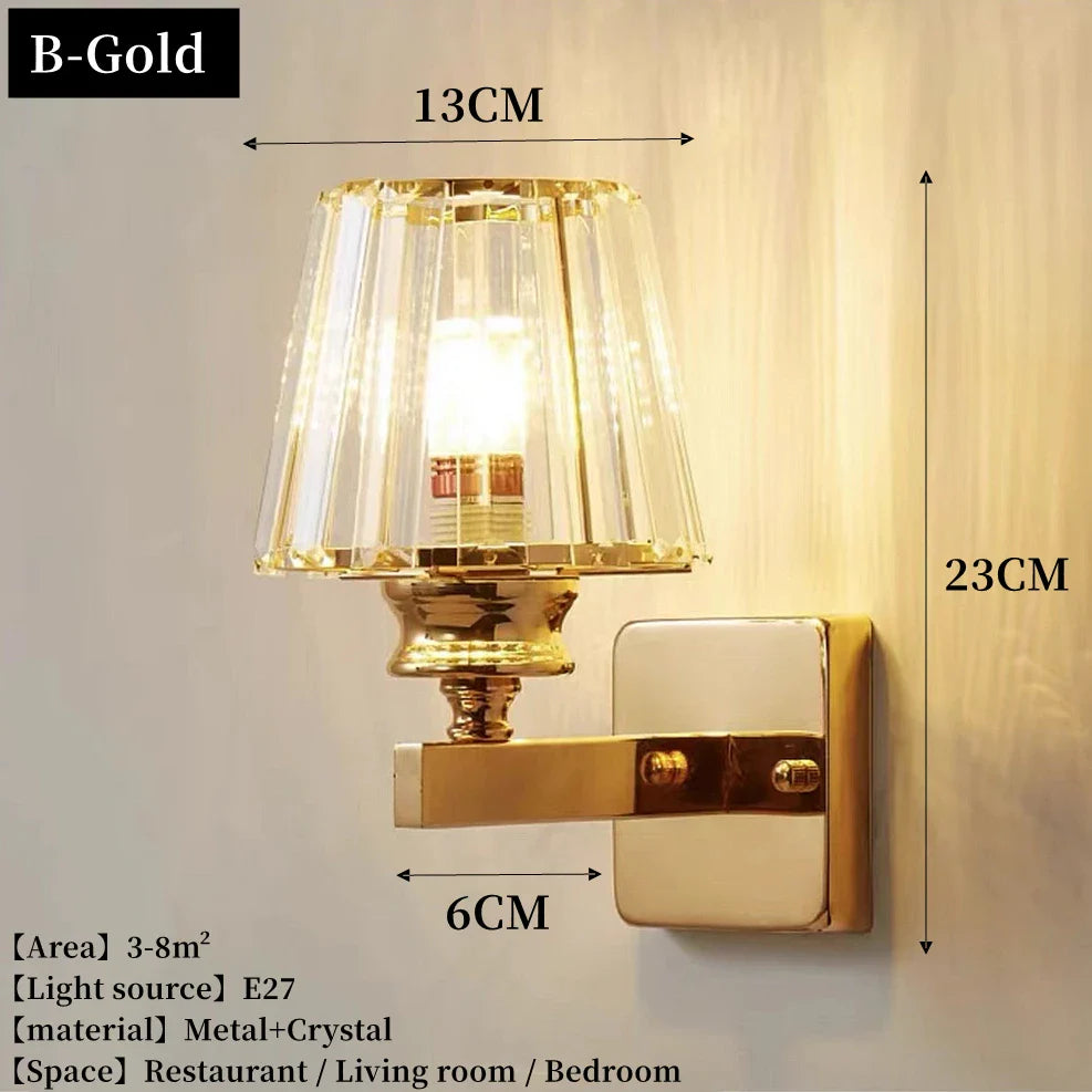 Elevate your interior decor with the Modern Luxury Gold Wall Lamp, a masterpiece of contemporary design and sophistication. This wall lamp combines the opulence of crystal with the sleekness of metal, offering an enchanting lighting solution for living rooms, hallways, bedside areas, and indoor spaces. Its LED technology ensures both energy efficiency and a warm, inviting ambiance.