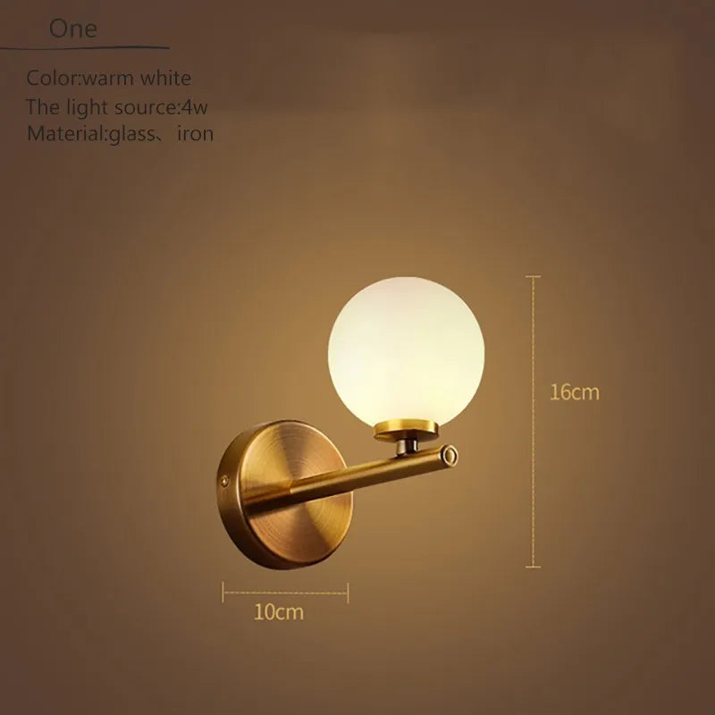 Nordic Gold Wall Lamp with Glass Orb Shade - Elegant Lighting for Bathroom, Bedside, Hotel, Aisle, and Hallway