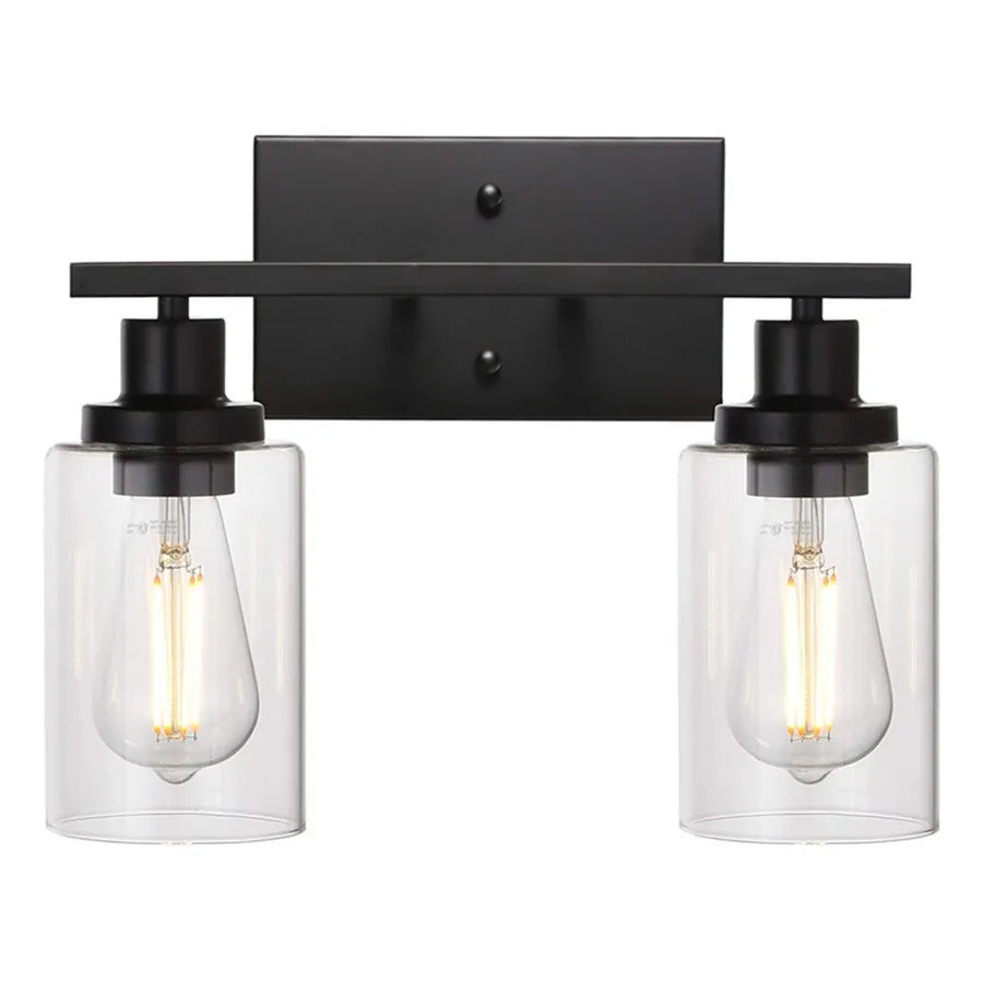 Vintage Industrial 2-Light Bathroom Vanity Light Fixtures - Matte Black Metal and Glass Sconces
