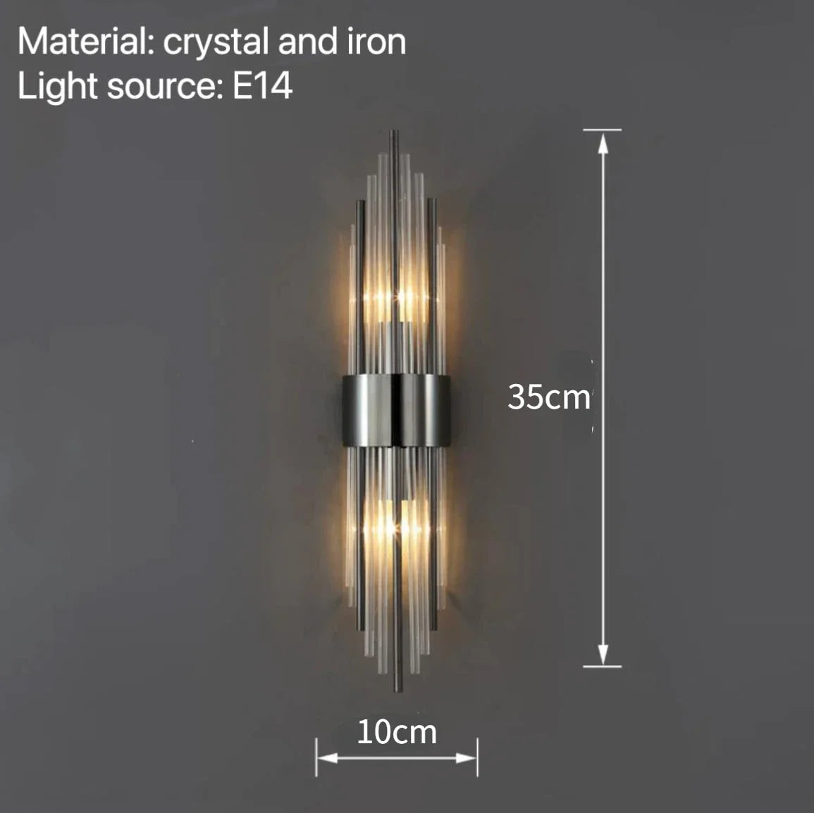 Introducing Isla's Modern Wall Lamps, a perfect choice for adding elegance and illumination to your bedroom, bedside, hotel, living room, or any space where you desire sophisticated lighting. These exquisite wall lamps are crafted with high-quality crystal and iron materials and are equipped with E14 light sources, providing a captivating and decorative lighting solution.