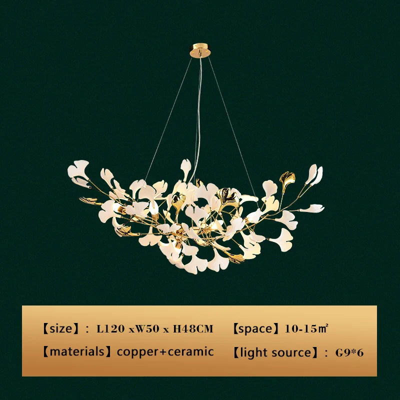 New gold chandelier white ceramic leaf lamp indoor home living room decorative lamp French luxury staircase ceiling lamp