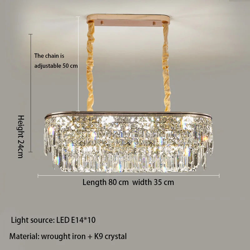 Enhance your interior decor in living rooms, dining areas, and bedrooms with the New Modern Simple Crystal Chandelier. It is an elegant statement piece that effortlessly combines modern simplicity, K9 crystal elements, and a fashion-forward design to enhance the overall aesthetics and create a sense of sophistication and luxury in your home. Illuminate your space with this stylish and functional chandelier, designed to make a lasting impression and elevate your interior decor.